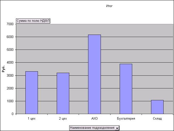 5. Определить общую сумму НДФЛ по каждому подразделению.