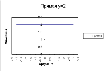 Построить прямую, параллельную оси абсцисс (Ох) и пересекающую ось ординат (Оу) в точке (0; 2) в диапазоне xÎ[-3; 3] с шагом D=0,5.