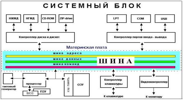 2. Структурная схема персонального компьютера. Охарактеризовать основные составные части ПК