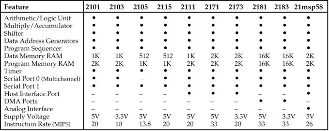 Таблица 1.1 показывает характеристики, которыми обладают отдельные члены семейства.