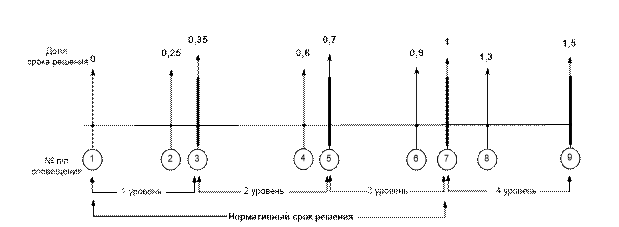 На Рис. 1 представлена временная диаграмма оповещений при решении проблем/заявок для 3 уровневой системы технической поддержки