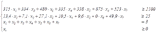 Используя данные Таб.1, составим задачу линейного программирования: