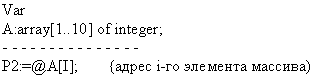 | Операция взятия адреса допустима для любых переменных, в том числе для элементов массивов, полей записей и так далее. |
