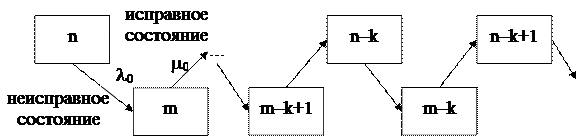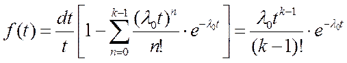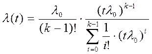 Если отказ устройства возникает тогда когда произойдет не менее k отказов его элементов, а отказы элементов подчинены экспоненциальному закону с параметром l0