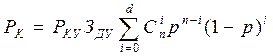 Вероятность k и более отказов, т.е. вероятность отказа устройства: