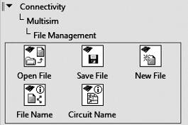 Эти ВП позволяют открыть, сохранить, создать новый пустой файл Multisim, увидеть имя файла и схемы. |