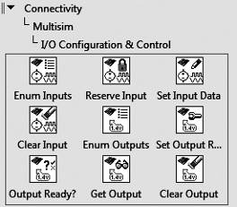 Для моделирования существуют различные элементы ввода/вывода. Эти ВП ввода/вывода позволяют получить, установить и удалить элементы ввода/вывода при моделировании. |
