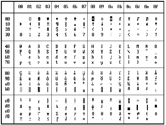 В ПЗУ видеоадаптеров персональных компьютеров семейства IBM PC/XT/AT расположены образы символов, отображаемых на дисплее в текстовых и графических режимах. В большинстве случаев эти символы соответствуют стандартной расширенной кодовой таблице ASCII символов.
