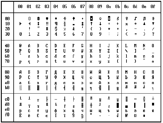 Как правило, видеоадаптеры поддерживают стандартную расширенную таблицу ASCII символов. Эта таблица не содержит образов символов кириллицы, и ваш компьютер не может отображать их на экране. Однако в некоторых случаях стандартную таблицу символов можно перекодировать, заменив образы некоторых символов на образы символов кириллицы.