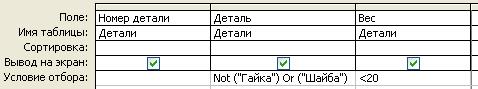 (Деталь = ”Гайка” или Деталь = ”Шайба”) и Вес<20