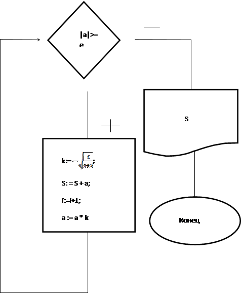 На первом шаге присвоим значение i:=1, а S:=0. значение aрассчитаем по общей формуле приведенной выше.