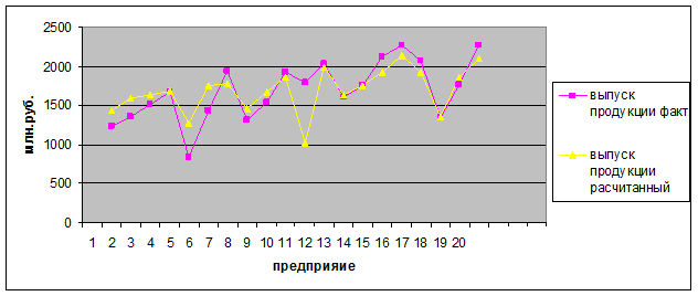 Рисунок 2.1 – зависимость объема выпуска продукции от стоимости ОПФ