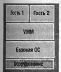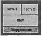На рис. 3-3 показана простая форма VMM типа 1, в которой VMM (гипервизор) работает непосредственно на «голом железе» (на оборудовании), а поверх VMM работает несколько гостевых ОС.