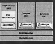 Альтернативу монолитному подходу составляет микроядерная (microkernelized) модель (рис. 3-5). В ней можно говорить о «тонком гипервизоре» — в этом случае в нем совсем нет драйверов. Вместо этого драйверы работают в каждом индивидуальном разделе, чтобы любая гостевая ОС имела возможность получить через гипервизор доступ к оборудованию. При такой расстановке сил каждая виртуальная машина занимает совершенно обособленный раздел, что положительно сказывается на защищенности и надежности.