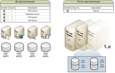 · Снижение затрат на оборудование Снижение затрат обеспечивается благодаря консолидации нескольких приложений и операционных систем на одном сервере.