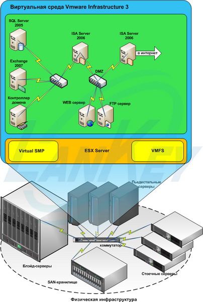 Рис. 2.1 Виртуализация серверов на базе VmWare vSphere (VMware ESX)