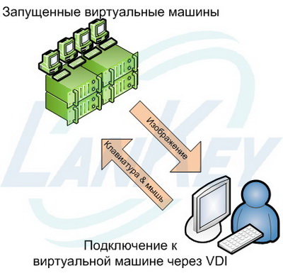 Таким образом, каждый пользователь, использующий технологию Virtual Desktop Infrastructure, получает в распоряжение виртуальную машину, с которой он может делать практически всё, что захочет, так же, как если бы он работал с собственным компьютером. Но все эти виртуальные машины функционируют на сервере виртуализации.