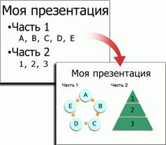 1.14 Преобразование текста слайда в рисунок SmartArt