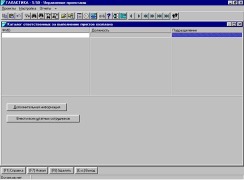 Появится окно "Каталог ответственных за выполнение пунктов хозплана", которое имеет следующий вид: