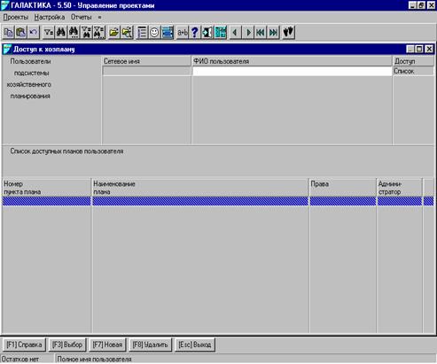 Появится окно "Доступ к хозплану", которое имеет следующий вид: