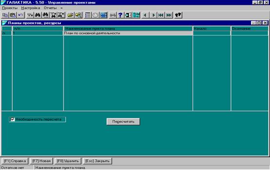 Появится окно "Планы проектов, ресурсы", которое имеет следующий вид: