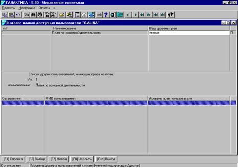 В нижней панели экранной формы находится список пунктов плана, доступных пользователю с вариантом доступа «Список».