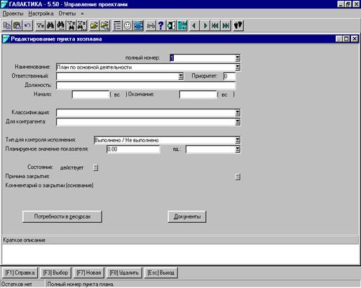 | Управление проектами=Проекты=Планы проектов, ресурсы=Редактир. пункта хозплана |
