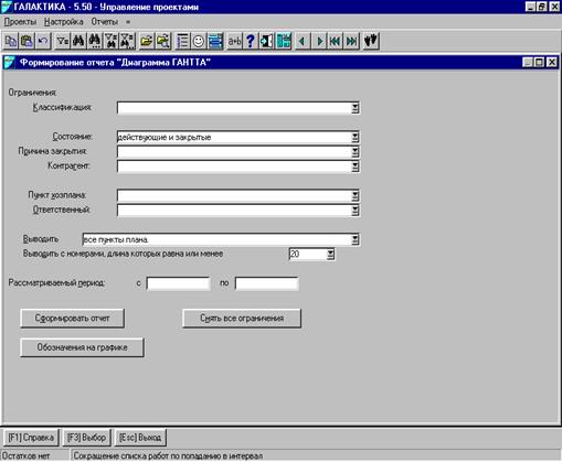 Задание 16. Выберете следующие ограничения для получения Отчета «Диаграмма Гантта»