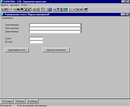 Задание 19. Выберете следующие ограничения в окне "Формирование отчетов "Журнал мероприятий":