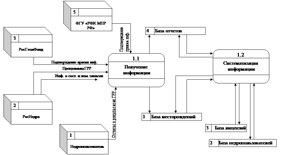 Вообще обмен информацией в ФГУ "ТФИ по Кемеровской области" происходит следующим образом: основной поток информации идет от недропользователей (недропользователей), которые предоставляют в ФГУ "ТФИ по Кемеровской области" отчеты о результатах геологоразведочных работ.