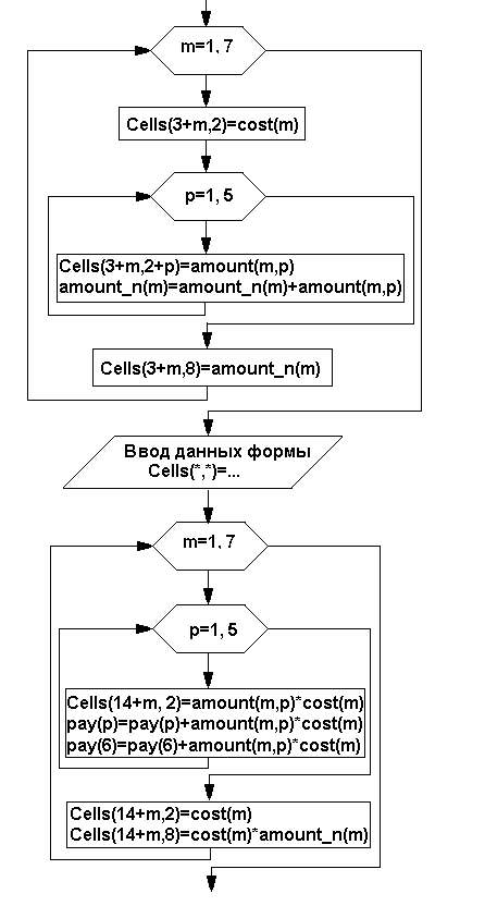 Cells(14 + m, 2 + p) = amount(m, p) * cost(m)