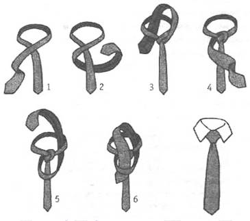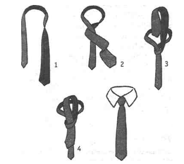 Этот узел имеет старинное название "Четырехплетный". Он относится к "простым" узлам, так как его очень легко завязывать, и даже у начинающих он получается с первого раза. Узел считается универсальным: выполненный из различных материалов, он подходит к любой форме воротника. "Четвертной" - это первый узел, которому сын учится у своего отца. Поэтому он встречается под такими названиями как "итальянский узел" или "старинный немецкий узел" - в зависимости от той страны, которая считает его своим открытием. Еще одно преимущество этого узла - бережная техника завязывания! Возможно, прадедом "Четвертного" был морской узел. Происхождение его имеет разные версии. В то время, когда он появился, в повозку запрягали четырех лошадей, а извозчики якобы завязывали уздечку во время стоянки именно таким узлом. По другой версии этим узлом извозчик завязывал свой шарф. Кроме того, в то время в Лондоне существовал мужской клуб, члены которого завязывали модные длинные галстуки "Четвертным" и тем самым прославили его. Многие поклонники этого узла стараются сделать его квадратным. Но он асимметричен! Именно поэтому этот узел не только для начинающих, но и для тех, кто хочет подчеркнуть свою индивидуальность и быть на "пике" моды (в соответствии с Рисунком 1).