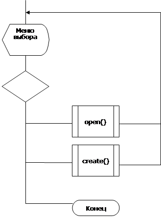 void open() - открытие файла БД. Идет запрос на имя файла , после этого к имени файла автоматически добавляется расширение “.dat” имя этого файла считается рабочим для всей программы. При удачном открытии файла его имя передается в функцию void interface(char *) и т.д.;