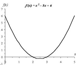 Рассмотрим задачу нахождения корня уравнения методом Ньютона с использованием циклических ссылок. Возьмем для примера квадратное уравнение: х2 - 5х + 6=0, графическое представление которого приведено на рис. 8. Найти корень этого (и любого другого) уравнения можно, используя всего одну ячейку Excel.