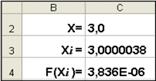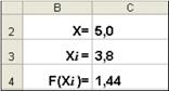 · В ячейку С4 поместим формулу, задающую вычисление значения функции, стоящей в левой части исходного уравнения, в точке Хi .
