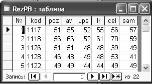 Экранная форма fPoisk предназначена для работы с базой данных и просмотра выходной информации. В верхней части окна приведена таблица с данными о тестируемых, а в нижней части окна представлены инструменты для работы с этими данными (поиск, кнопки: «Удалить», «Изменить», «Результат» и «Выход»).