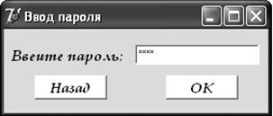 Для прохождения теста необходимо на главной форме выбрать кнопку выбора «Тестирование». Если была выбрана кнопка «Обработка анкет» или «Поиск в базе данных», то загружается форма fPassword – ввод пароля (Рисунок 17). Доступ обследуемых к базе данных и просмотру результатов тестирования ограничен, поэтому с помощью этой формы осуществляется санкционированный доступ работников института.