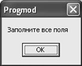 Пользователю необходимо ввести свои данные (заполнить все текстовые поля и указать пол), выбрать тест и нажать кнопку «Далее». В случае если пользователь не ввел данные, будет выведено сообщение об ошибке (Рисунок 20). Только после того как программа проверит поля и не обнаружит ошибок, можно будет начать тестирование.