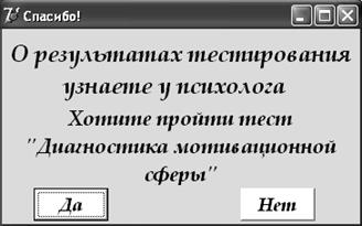 Если на форме fAnket была выбрана метка «Диагностика мотивационной сферы» загрузиться форма тестирования fDiagMot. Внешний вид формы представлен на Рисунке 23.