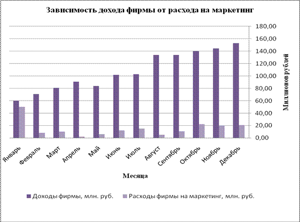 Рис. 3 Гистограмма зависимости дохода фирмы от расхода на маркетинг