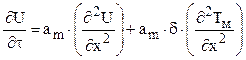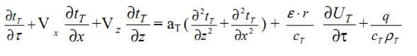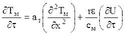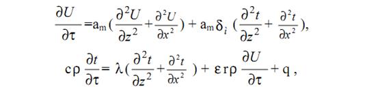 В процессе прогрева металла при атмосферном давлении среды внутри пластины отсутствуют фазовые превращения (критерий парообразования e в уравнении (2) равен нулю) и, как следствие, молярный перенос внутри древесины отсутствует. Тогда, система дифференциальных уравнений (1) – (3) сводится к следующим уравнениям
