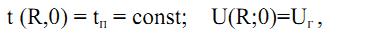 При этом следует иметь в виду, что Uо(t) – гигроскопическое влагосодер-жание материала, установившееся к моменту окончания осушки свободной влаги с поверхности материала. Граничные условия могут быть записаны в виде: