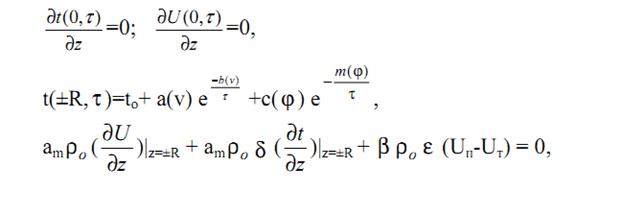 Тепломассоперенос в металлических изделий в процессе понижения давления описывается дифференциальными уравнениями (1) – (3) при граничных условиях в виде выражений