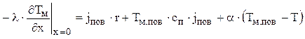 В процессе контактного прогрева металла температуру поверхности материала в первом приближении можно принять равной температуре нагревательных элементов, а процесс массообмена характеризуется разностью парциальных давлений паров удаляемой влаги в среде и над поверхностью влажного материала. Тогда граничные условия для решения