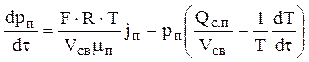 После некоторых преобразований выражений (15), (16) и (17) получены уравнения, определяющие скорости изменения парциальных давлений пара и газа и температуры среды