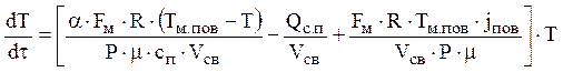 В случае ведения процесса прогрева материала в парах испаряемой влаги общее давление и температура в камере описываются дифференциальными уравнениями, записанными в виде