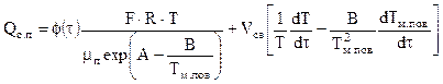 Математическое описание процесса переноса тепла и массы для парогазовой фазы в условиях непрерывного понижения давления, а также при отсутствии полей скорости, температуры, плотности пара и инертного газа во внешней среде основано на уравнениях материального и теплового балансов. Для нестационарных условий протекания процесса разница между притоком и отводом составит накопление массы и энергии в свободном объеме аппарата