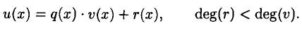 Если даны два полинома, u{х) и v(x), над полем и v(x) <> 0, можно разделить u(х) на v(х) и получить полином-частное q(x) и полином-остаток г(х), удовлетворяющие условиям