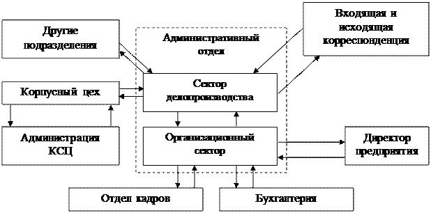 Каждый из отделов связан между собой производственными задачами. Информационные потоки между отделами осуществляются как на бумаге, так и в электронном виде.