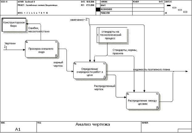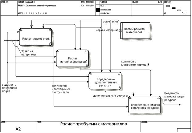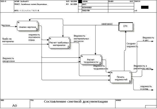 Основной задачей при прохождении был сбор необходимой информации для реорганизации работы отдела, а именно реализация новой системы для составления сметной документации. При определении основных требований были выслушаны пожелания работников отдела и руководителя отдела. Составлена модель предметной области (Приложение А) при помощи BPWin.